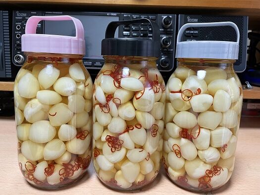 そして畑仕事の後は自宅でニンニクの酢漬けにトライしてみました。