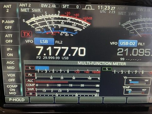 お昼前の時間帯にIC-7610のANT1とANT2にそれぞれ釣り竿アンテナとタワー上のRDPを繋いでRIGのANTスイッチで切り替えてみました。