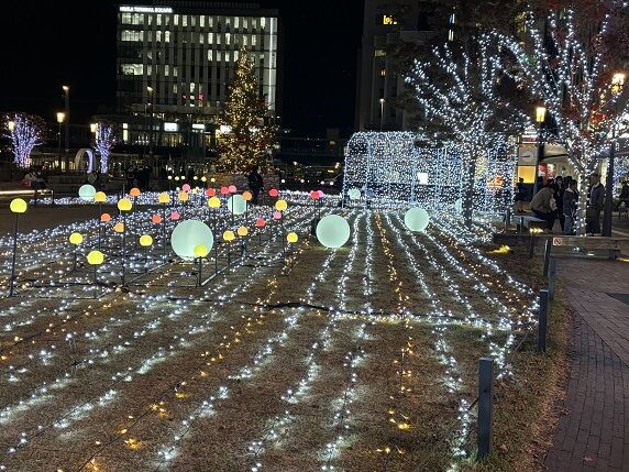 我が2702市の駅前もお城から駅前までのライトアップも始まっていて田舎の駅前とは思えない程の賑やかさを醸し出していました。