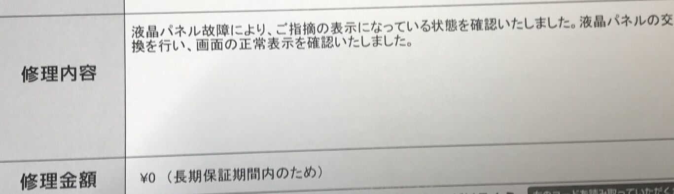 内容は液晶パネルの交換らしくデータもそのままで戻ってきたので一安心です。